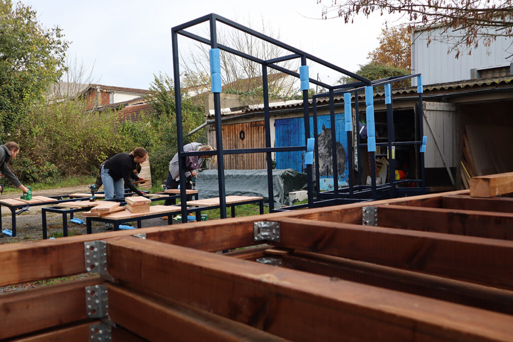 Ainsi depuis le démarrage de l’occupation, Mathieu a bénéficié d’un espace pour sa pratique artistique de microarchitecture. Geoffrey a pu démarrer son activité de métallerie dans un des boxs du local. Le collectif Cmd+O est devenu notre voisin d’atelier pour leurs divers projets et on rejoint la gouvernance du lieu. Greg a occupé une pièce pour y peindre ses oeuvres picturales. Jonas la Classe a installé son atelier pour développer ses projets d’art urbain. D’autres collectifs ou personnes ont pu venir développer leurs projets momentanés.