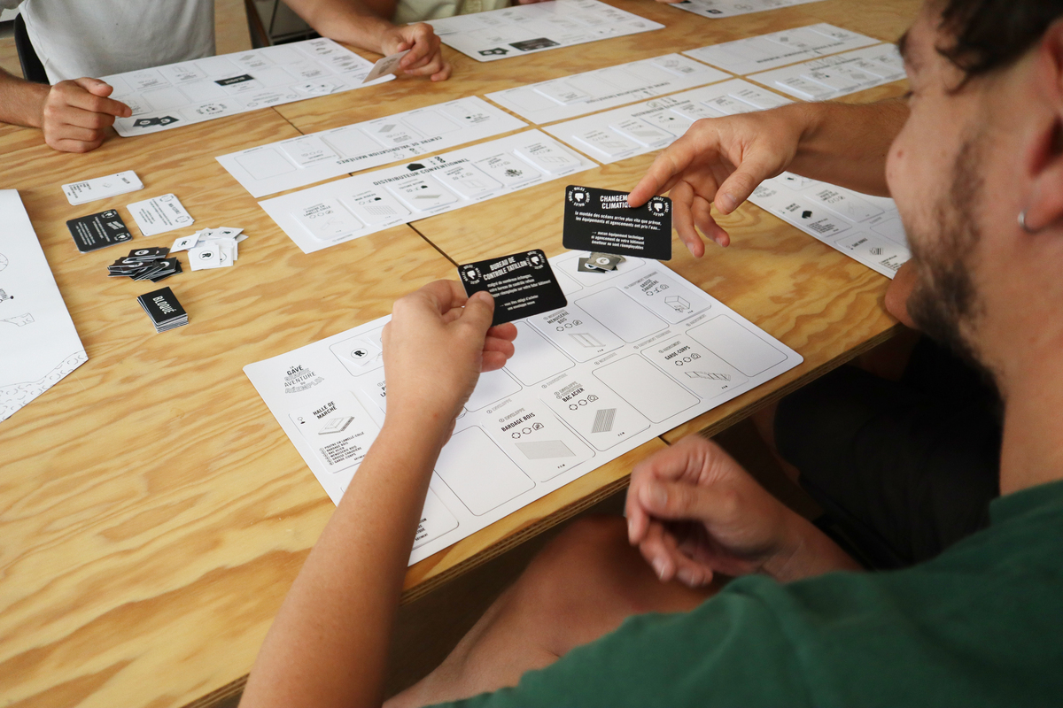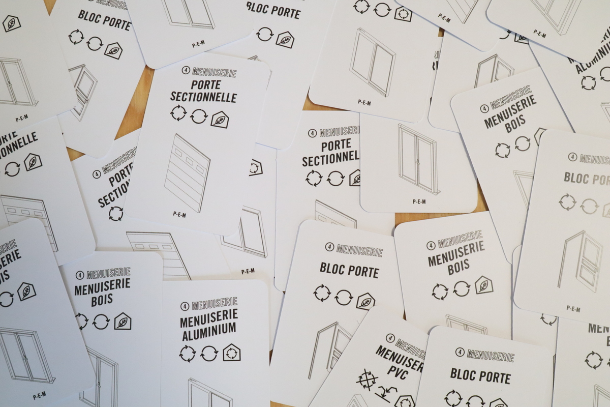 L’objectif de ce jeu est de comprendre les grandes étapes du réemploi de matériaux dans les chantiers de déconstruction-reconstruction. Le jeu touche du doigt les grands enjeux du réemploi lorsque les joueur.euses cherchent l’équilibre entre réemploi de matériaux, valorisation de ce qui n’a pas pu être utilisé et achat de matériaux neufs.