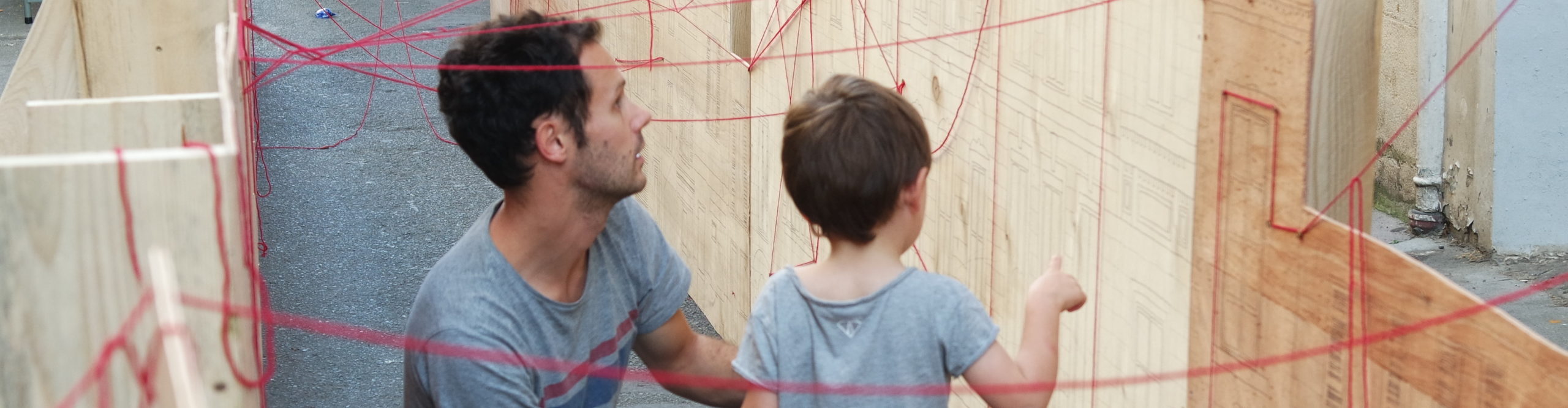 Conçue dans le cadre du projet “Fil Rouge” de la Trame Douce – Bordeaux [RE]Centres pour la biennale d’architecture Agora 2017, la Méga Maquette a été un outil permettant de sensibiliser, d’informer et de faire interagir les habitants avec le futur projet. Pensée comme l’outil pédagogique d’un atelier participatif à ciel ouvert, elle était le support du tissage d’un fil de laine rouge symbolisant le futur tracé.