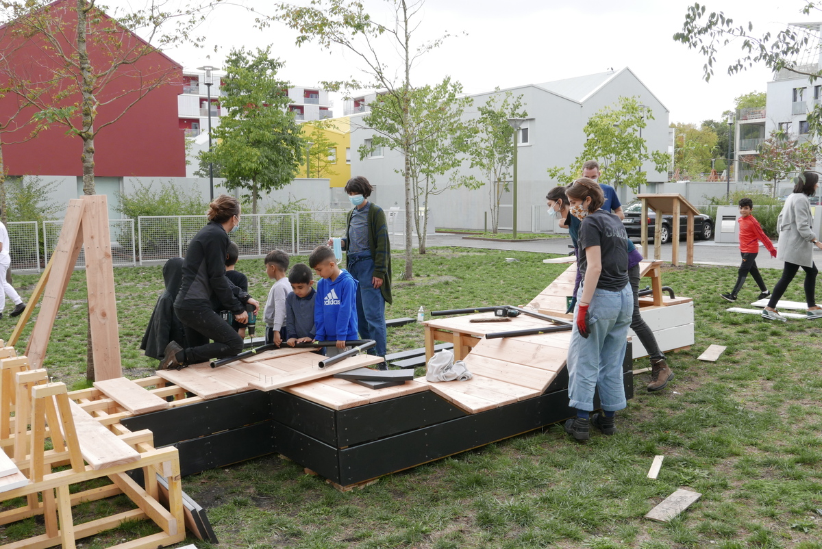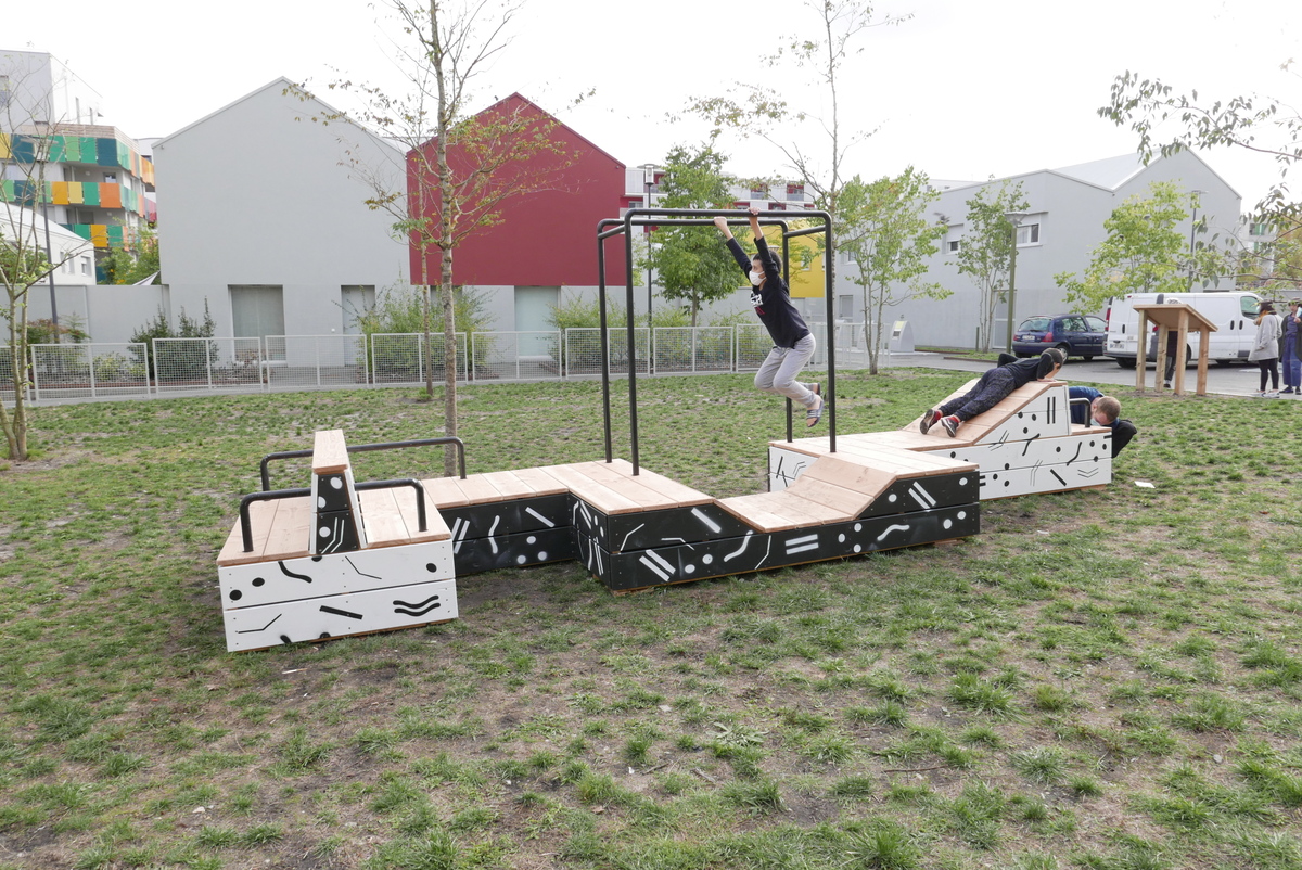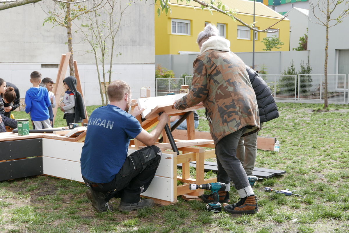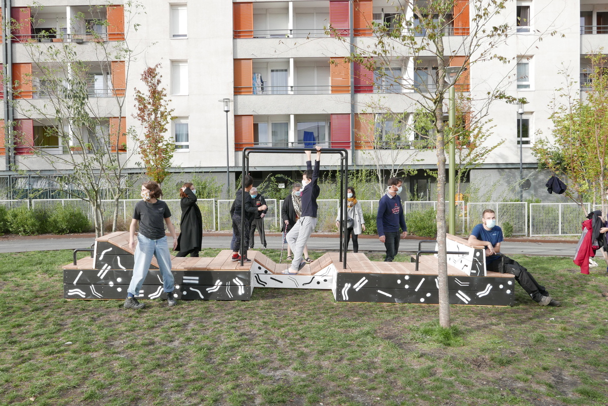 Toujours tiraillés entre la facilité d’aseptiser l’espace public de ses potentiels usages en réaction à des usages détournés pour le trafic de drogue ou vis-à-vis de certaines dégradation et celle d’apporter un confort et un cadre de vie de l’espace public pour toutes les générations, CANCAN fut invité à proposer des installations de préfiguration permettant de tester les usages, de vérifier leur place dans le quartier.
