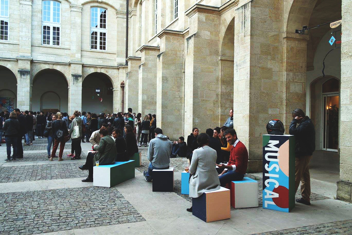 A l’occasion du festival Musical’écran édition 2016, l’association organisatrice Bordeaux Rock a fait appel à CANCAN afin de proposer et réaliser la scénographie de l’espace de projection et de concert à la cour Mably à Bordeaux.