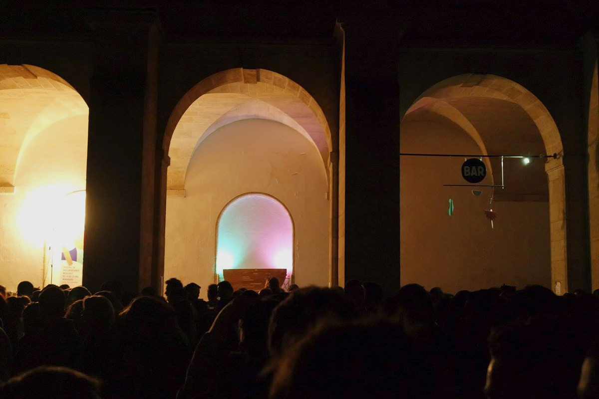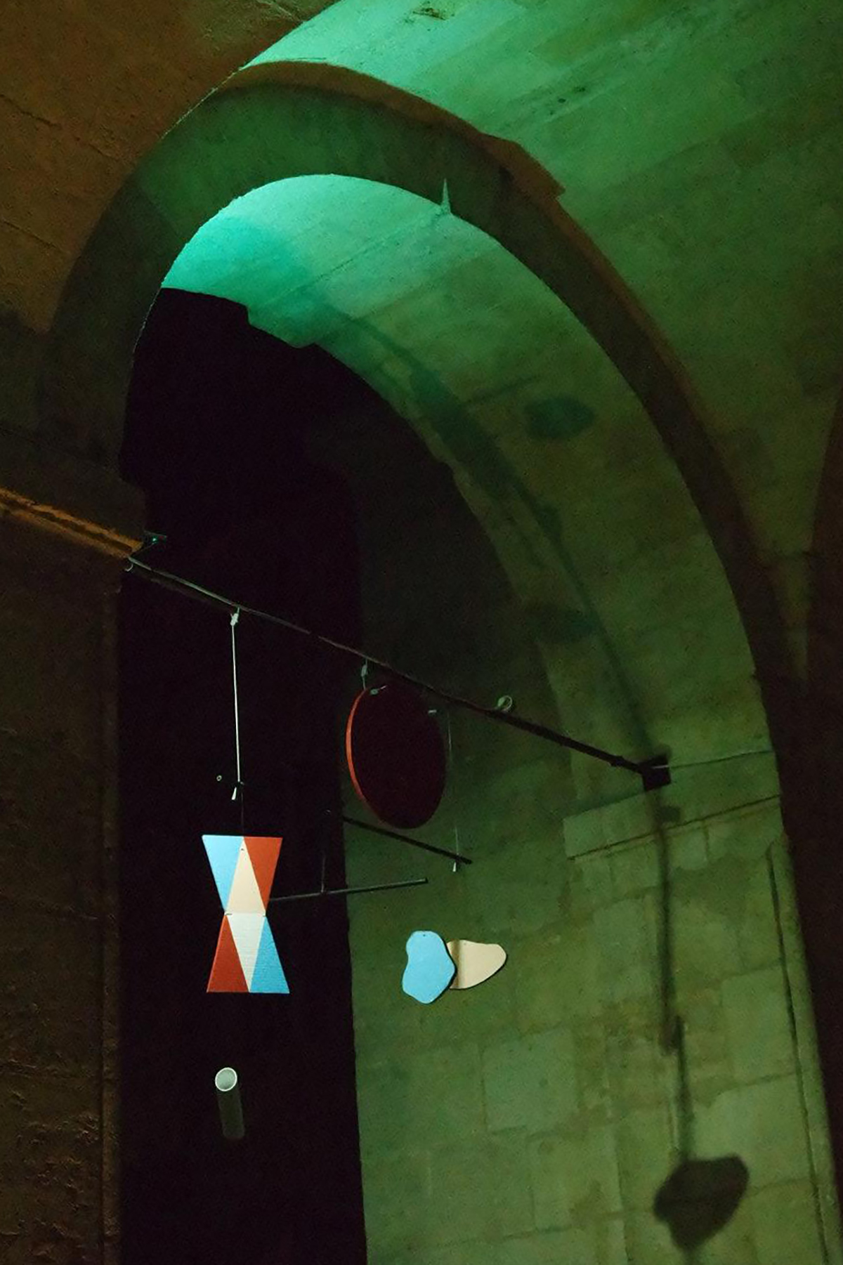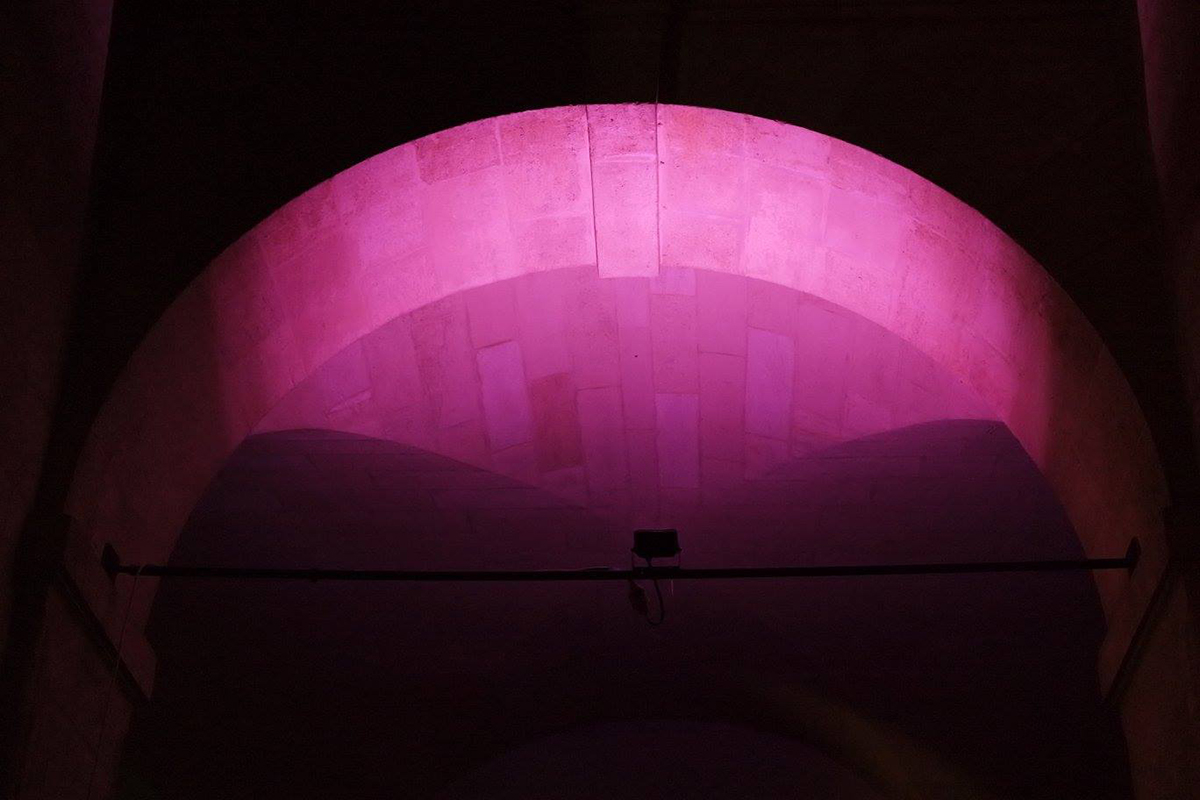 Le travail de l’éclairage a permis de varier les ambiances lumineuses et de séquencer l’espace sous les arcades par différents filtres colorés de gélatine fixés sur des spots lumineux. Ils viennent mettre encore en valeur les volumes architecturaux du cloitre.