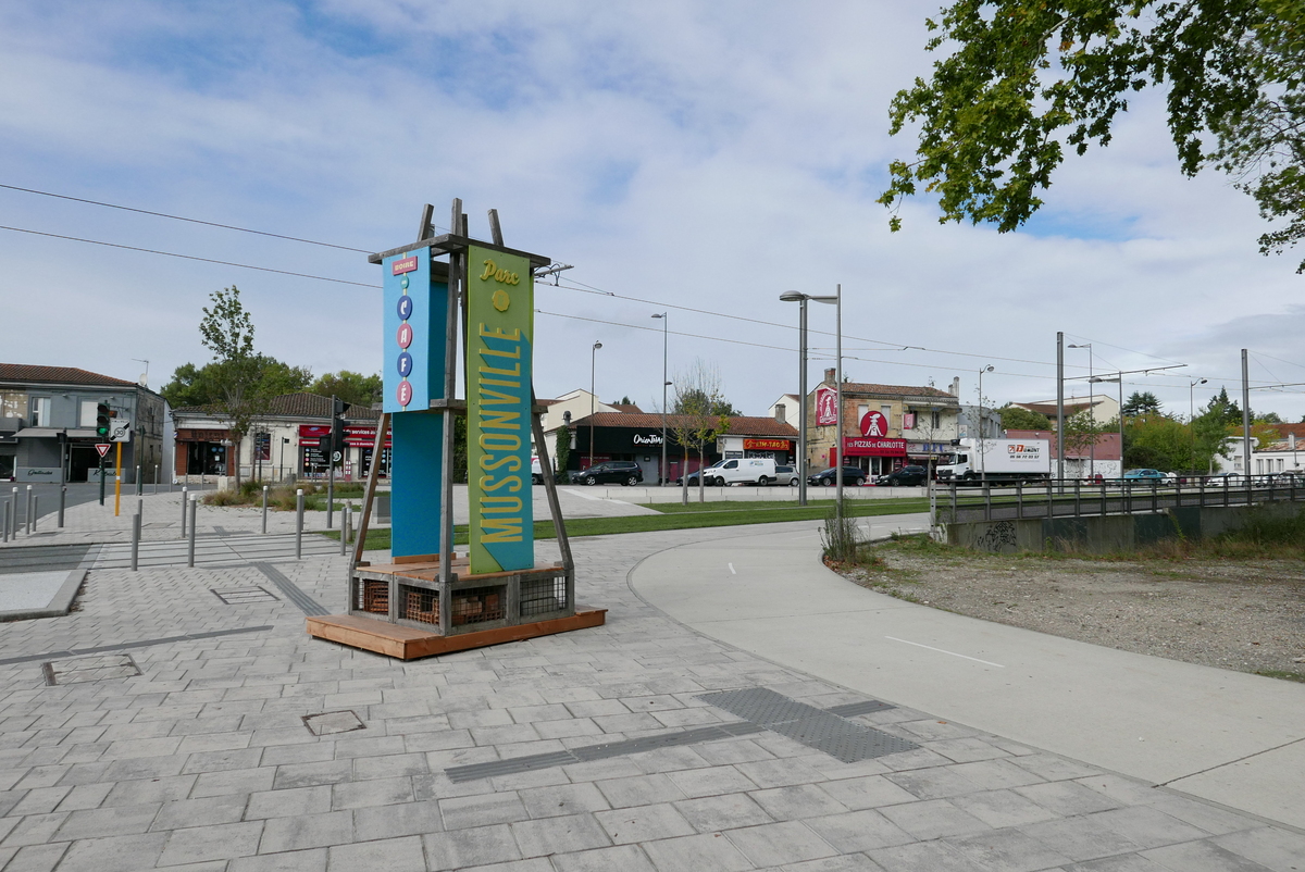 Ces totems annoncent l’arrivée du projet par leur seule présence. On peut aussi bien s’asseoir, chercher son téléphone au fond de son sac ou lire les informations sur l’affichage dédiée aux mairies.