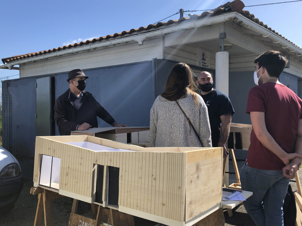 Le deuxième atelier participatif in situ avait pour objectif d’échanger avec les habitants et ceux qui les côtoient au quotidien sur la base des documents d’état des lieux ainsi que d’une maquette d’un bloc sanitaire à l’échelle 1/10e sur l’ensemble des possibilités et envies d’usages et de modification de l’existant. Par le biais de la maquette démontable, il a été plus évident de se concentrer sur des aménagements souhaités et d’autres pas du tout. Par exemple, l’emplacement du WC, ou de la douche vis-à-vis de la pièce de vie a été très important concernant les usages du quotidien.