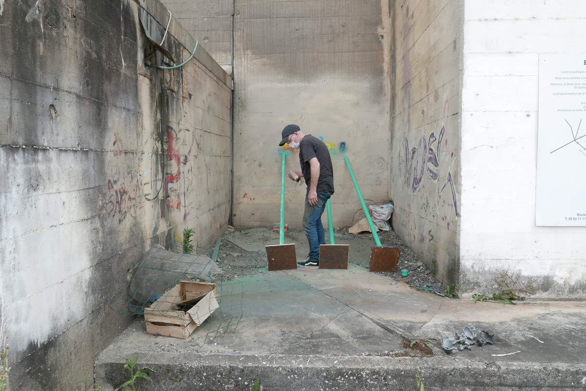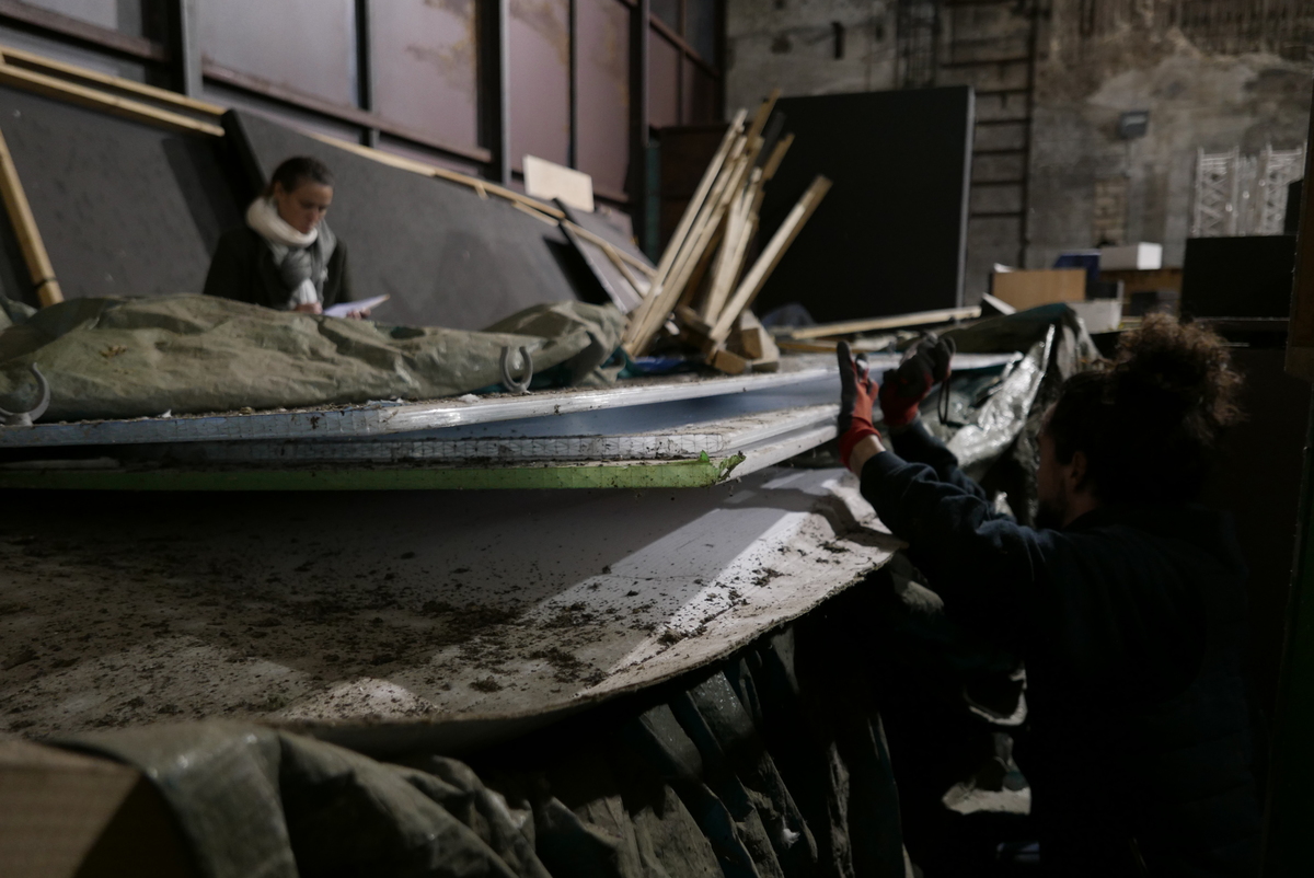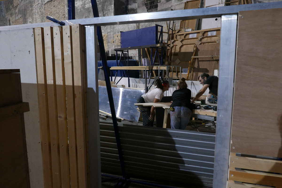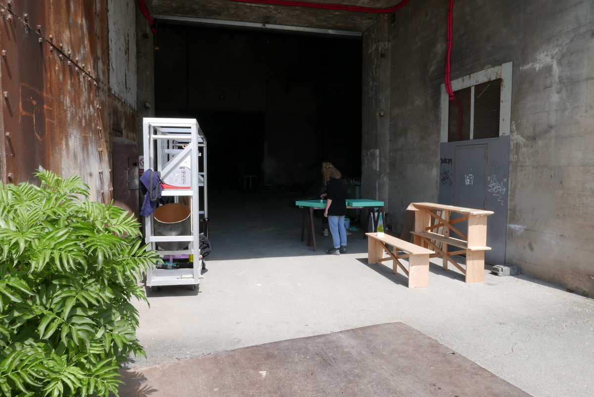 Ce projet a été une occasion unique d’occuper (dans le cadre d’un occupation temporaire conventionnée) une des alcôves de la Base Sous-Marine à la fois comme atelier, lieu de chantier participatif et surtout comme caverne l’Ali Baba. Une des toutes premières missions a été d’inventorier les éléments stockés depuis des années dans les alcôves afin de pouvoir identifier et cibler les pistes et opportunités de réemploi. Sous le regard bienveillant et avec l’aide des équipes de la Base, nous avons dressé un inventaire numérique exhaustif de ce joyeux bazar.